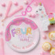 four is so sweet Pink Frosting Paper Plates