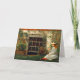 A fine art blank note card designed for any correspondence, featuring the painting, The Four-Leaf Clover (1873) by the American artist Winslow Homer (1836–1910). The scene depicts a young girl wearing a straw hat, holding a four-leaf clover, and sitting in the grass beside a window adorned with planters of vibrant red geraniums The inside of the card includes the title of the painting and the artist's name.