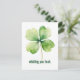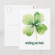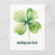This postcard features an illustration of a four-leaf clover and the phrase "wishing you luck."