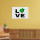 Text Love made of letters and a green image of four leaf lucky clover. Let love and luck be with you. St. Patric's Day theme. Wall Art Poster