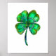 traditional watercolor artwork of a four leaf clover in bright green colors as a decorative poster print