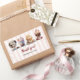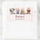 Celebrate the sweet birthday kid with a make-your-own sundae party. Four loaded ice cream sundaes are featured on this sticker featuring a light striped background reminiscent of a sweet shoppe. Use as envelope seals or on favors for a make-your-own sundae ice cream birthday party, ice cream social, or fundraiser. Available with matching products.