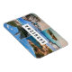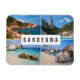 Rectangular fridge photo magnet with a souvenir collage of four landscape photos of the beautiful beaches on the mediterranean island of Sardinia, Italy and the italian text: 'Sardegna', meaning Sardinia.