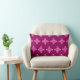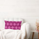 Lumbar pillow in a Far Eastern inspired mandala pattern in magenta and pale pink, on a deep plum purple background