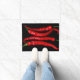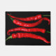 Four Red Chilies - Four horizontal red cayenne chili peppers photographed on a simple black background.