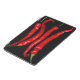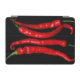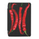 Four Red Chilies - Four horizontal red cayenne chili peppers photographed on a simple black background.