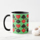 Hearts, diamonds, clubs and aces are all represented on this customizable mug. Customize the background with your favorite color.