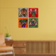 Four ugly dog faces unique abstract art poster