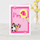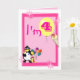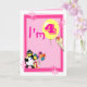 4th birthday card with funny clown, penguin and ice cream and balloons, on a pink background. Easily personalize this design by adding or changing the text.