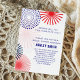 Plain white envelopes are included with paper invitations and will come to fit the invitation size you select. If you don’t need the envelopes, you may choose to not receive them by selecting the dropdown below "Envelopes" and choosing "None." If you’d like to have a design on your envelopes, you can browse all of these available envelopes to find the design that complements your Fourth Of July Bridal Shower Invitation For July 4.
