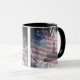 Enjoy your hot drinks in this patriotic mug displaying the original 13 star flag and Independence Hall on a background of fireworks.