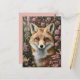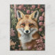 A beautifully detailed fox gazes into the camera, surrounded by vibrant pink spring florals, creating a serene and enchanting woodland scene.