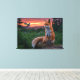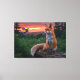 Add a sense of serenity and natural wonder to your space with this Fox and Bird at Sunset wrapped canvas print. This original design captures a quiet woodland moment, as a curious fox gazes toward a perched bird against the backdrop of a glowing forest sunset.