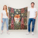 Fox and Foxglove Flowers William Morris Inspired Fleece Blanket