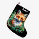 Fox and Holly with Red Berries Large Christmas Stocking