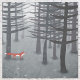 A wild red fox stands among trees in a dark forest. A landscape painting for animal, nature and wildlife lovers. Original art by Nic Squirrell.