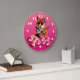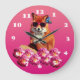 Pink Round Wall Clock with fox art on it.