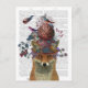 Fox Birdkeeper with Artichoke by Fab Funky. Fox posing with birds and an artichoke atop its head. Has a book page for a background. | 192164D