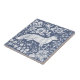 Fox Blue White Woodland Bird Leaves Denim Ceramic Tile