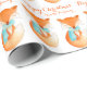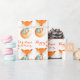Personalize cute wrapping paper fox cub wrapped up warm repeat design pattern on a Snow White background. Personalize this fox art seasonal festive paper with your own greeting and family name. Currently reads Happy Christmas from the Fox family. Ideal for your Christmas gifts from families and businesses associated with foxes or animals. Cute whimsical fox painted in watercolor and designed by Sarah Trett.
