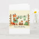 Designed with a gentle homey scene, the card shows an upright fox with russet fur and a creamy belly standing close to a clothesline as if carefully taking care of a small family ❤️. It wears a sage-green tunic, and its attentive posture suggests a tender, protective nature. Between sturdy wooden fence posts, tiny striped socks and a small green romper hang in a neat row, adding a sweet, everyday romance to the moment. Below the line, two little foxes rest together in a woven basket, their faces calm and close like close friends sharing a quiet afternoon. Nearby, a third little fox peeks out from a soft green blanket, its bright eyes turned toward the standing fox with trusting affection 🌼. The background is a creamy yellow with soft light, and you can see hints of golden grass and wood grain that make the setting feel sunlit and cozy. Along the bottom edge, the message “Thanks for All the Little Things” appears in dark lettering, centered beneath the illustration. The clothesline stretches horizontally across the upper half, with the small garments lightly angled as if swaying in a breeze.