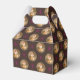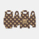 This fox design features cute foxes wearing a bow, two-toned colored circles and pink stars on a brown background.