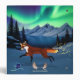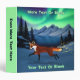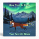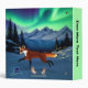 A red fox (Vulpes vulpes) running through a snowy, winter night with the Northern Lights aglow over distant mountains; sparks emanate from the fox's tail. There are two places for you to customize this product by adding your own text on the front, and another on the spine.