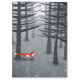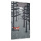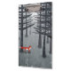 A lone wild red fox stands beneath the pine trees in a dark forest. For nature, wildlife and animal lovers.