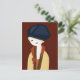 Girl with blonde hair wearing a blue beret and a fox inspired jacket Tones of autumn red and russet Poster art created on computer, simple neat and fashionable