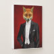 Fox In Evening Suit, Portrait by Fab Funky. Features a well-dress fox against a plush red background. | 190731D