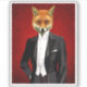Fox In Evening Suit, Portrait by Fab Funky. Features a well-dress fox against a plush red background. | 190731D