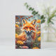 A pretty little fox is looking at you. He's sitting between flowers playing with butterflies.