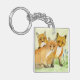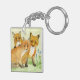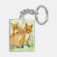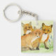 A watercolor painting of three fox kits adorns this pretty keychain!