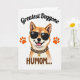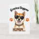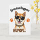This card features a stylized fox-like dog in a bust portrait on a plain white background, giving a friendly, affectionate energy that feels like a warm inside joke between close companions ❤️. Its pointed ears and warm russet-and-cream fur stand out, while dark sunglasses with a spotted pattern add a cool, flirty edge to its wide, open-mouthed grin and small pink tongue. Around its neck is a matching spotted collar with a small shiny gold medallion that catches the light like a tiny keepsake. At the top, a short line of text curves in an arch above the character in dark lettering, and a second line sits below in a thicker, rounded style, also in dark text. The spacing keeps the dog centered, as if it’s posing proudly for someone it adores. Two bright orange paw prints sit on either side of the head, adding a cheerful pop of color 🌼. The sunglasses are nearly black with a subtle spotted pattern, and the paw prints are a strong orange against the white backdrop.