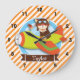 Fox Pilot in Green & Orange Airplane Large Clock