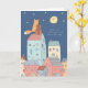 Greeting card depicts a cute watercolor fox playing a contrabass at night on the rooftop with stars shining and the words, "Night time is the right time for a love song."*