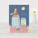 Fox playing a contrabass at night on rooftop, card