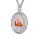 I chose gold plated so that the metal would not react with my skin oils and perspiration. But, I changed the necklace from the gold plated one to a sterling silver. My skin cells will tarnish the silver. But it will not look as bad if some portion of the gold plated necklace somehow became compromised. Zazzle did a find job turning the picture into a pendant for me. As you can see, the colors and the printing of the final product, match the preview. The picture I took is not very clear. But I am pleased with the product I received.