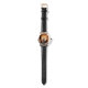 Has heft and feel of expensive stainless steel quartz watches. Good band with safety catch. I removed links, which is easy because engraved arrows show direction to push the linking pins. As always by this seller, the image (a railroad logo) is a perfect reproduction of my emailed image, and is precisely spaced and aligned.
