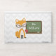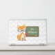 Hp laptop skin featuring an illustration of a fox standing at a chalkboard over a chevron background. Personalize the name.