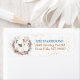The left side of these return address labels feature an image of a spring flower wreath in colors of soft pink, blue, gold, green and cream. At the center is a beautiful watercolor portrait of a wire haired Fox Terrier dog. Tiny gold confetti gives a subtle sparkle to the background. Your custom text is in blue and brown gold at the right.