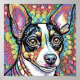 A colorful and whimsical square poster of a fox terrier.