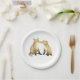 A watercolor painting of two red fox kits in the spring adorns these paper plates!