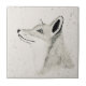 Fox watercolor painting. Woodland animals vintage tile. Black and white tile.