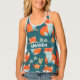 Women's All-Over Print Racerback Tank Top, White Piping, S