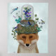 Fox with Butterfly Bell Jar by Fab Funky. Features a fox with butterflies and birds atop its head. | 191923D
