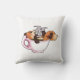 Fox with Coffee Cup Throw Pillow