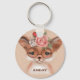 Cute watercolor fox with floral decoration on the head and glasses. Optional monogram