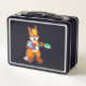 This is a standard metal lunchbox that appears to work just fine. We designed this box ourselves with an uploaded photo and custom text on the front and back. It looks absolutely beautiful except the front of the lunchbox is not centered like it shows in the photo. The print borders don't align with the inset flat part of the box where the preview photo online showed it perfectly centered in there. The back looks nice and centered though.