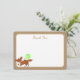 Playful fox and a green balloon baby shower flat card thank you with woodland birch tree design in craft brown to compliment our cute woodland fox baby shower invitation set.